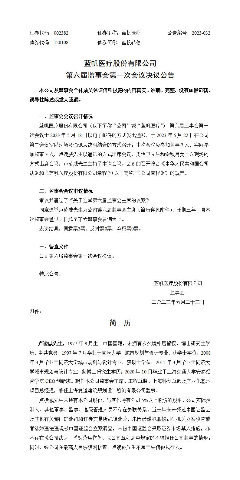 Home page Investor Relations 第六届监事会第一次会议决议公告